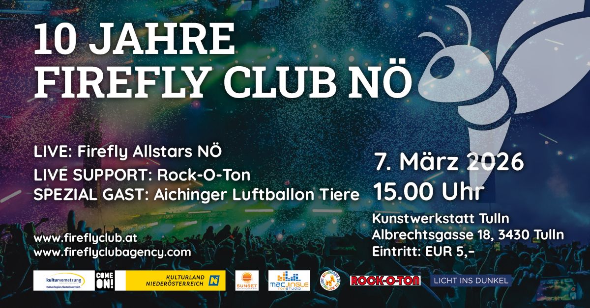 • 7.3 FIREFLYCLUB PARTY NÖ IN DER KUNSTWERKSTATT TULLN AB 16 UHR MIT ROCK O TON
